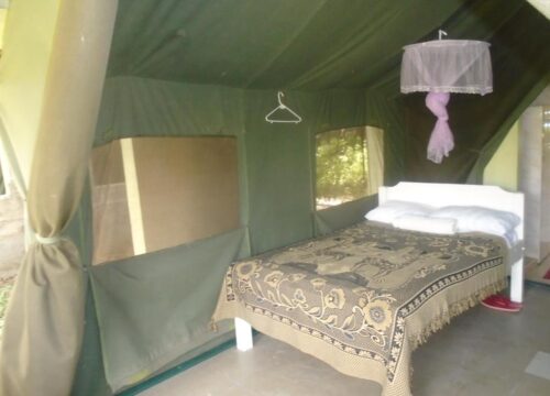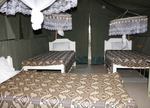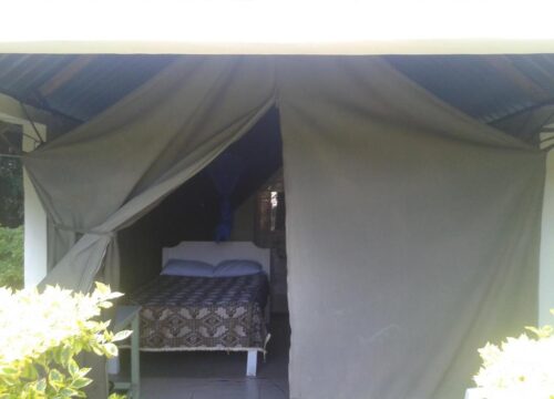 Traditional African and international dishes are available at the restaurant. Meals are prepared with fresh organic produce transported daily to the camp.